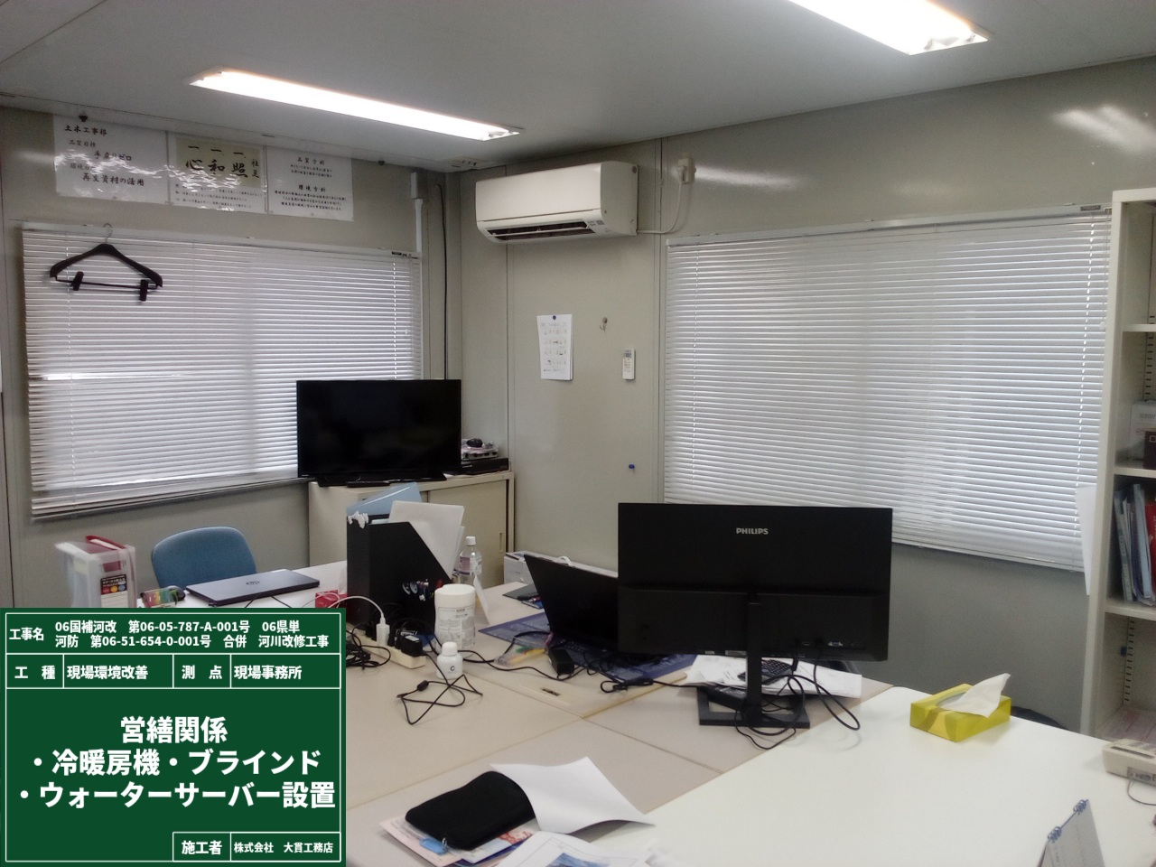 中は、冷暖房・ブラインド・ウォーターサーバー・エアコンが完備です!