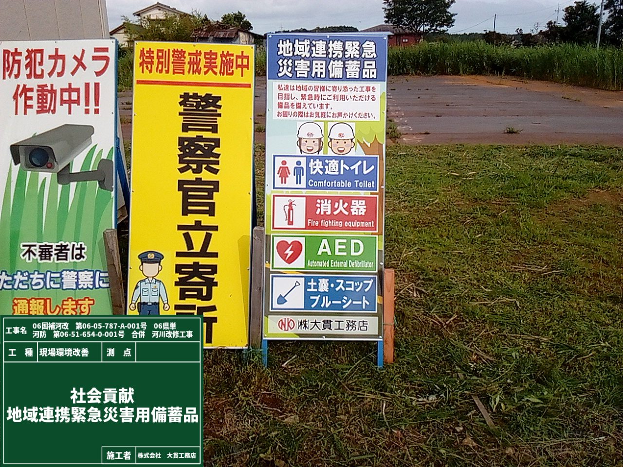 今回の現場では、地域連携の一環として、緊急災害用備品を用意しました!