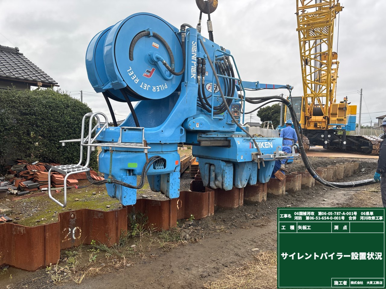 今回はこのサイレントパイラーで、鋼矢板を打ち込んでいきます。