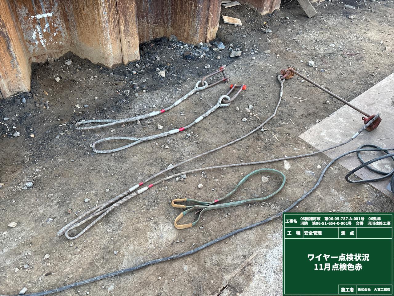 現場で使用しているワイヤーロープには、色テープを巻いています。このテープ、実は毎月お色直しをしているんですよ✨