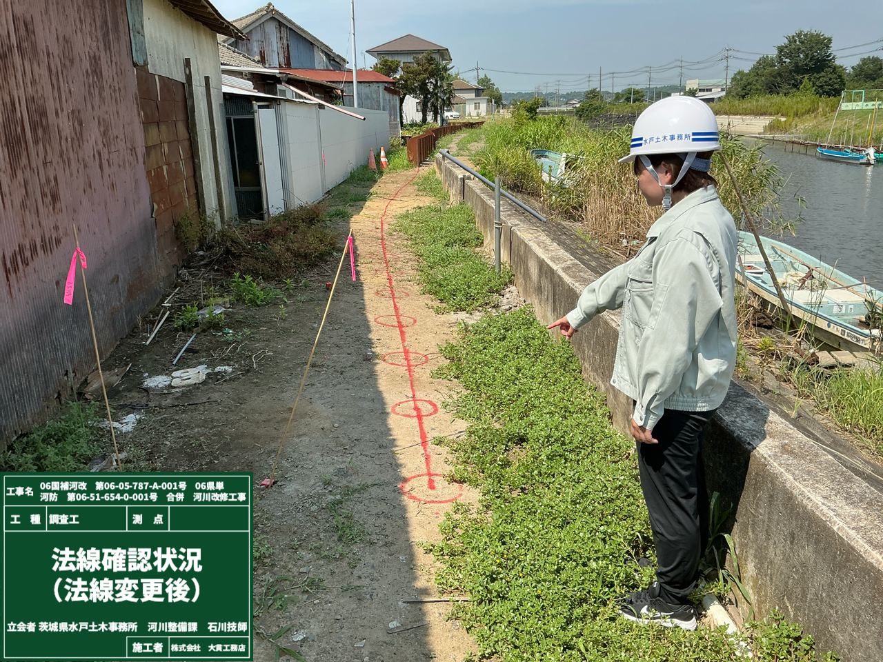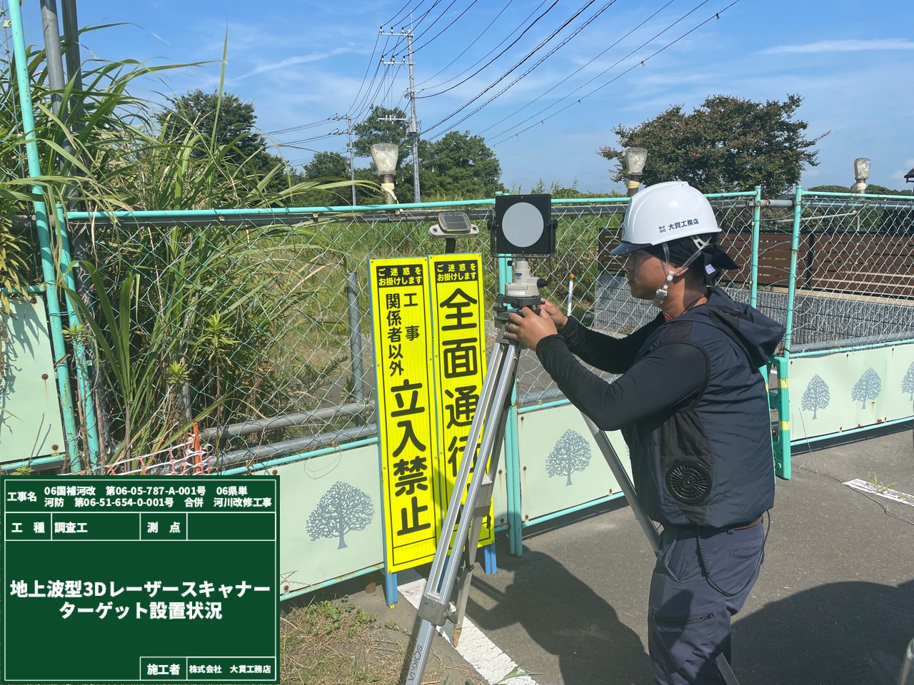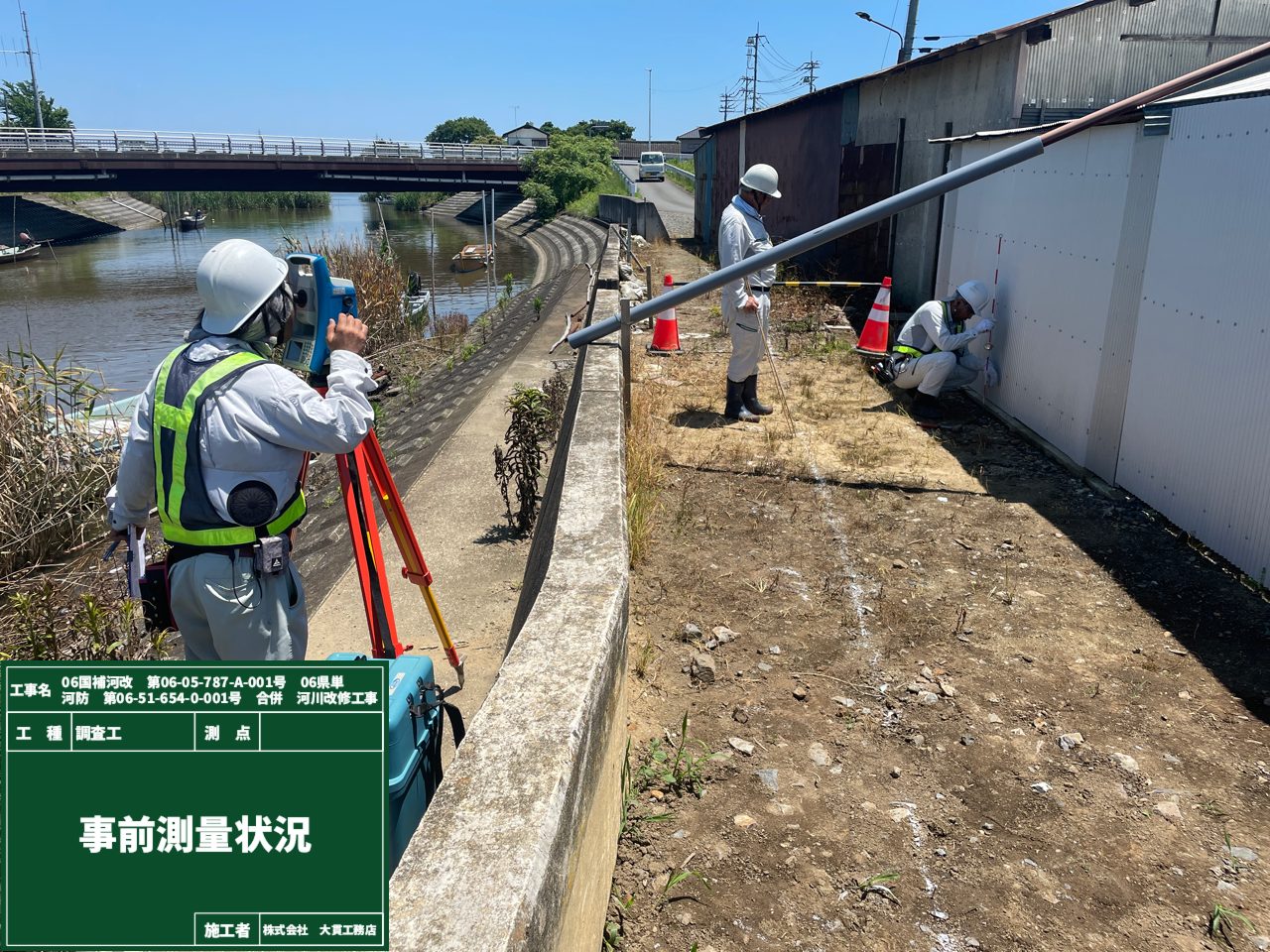 事前測量と言って、工事に入る前に「現在の地形や構造物の位置・高さ」を正確に測って記録しています!
