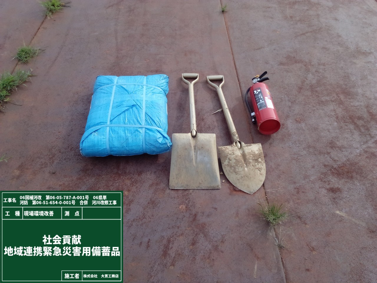 今回の現場では、地域連携の一環として、緊急災害用備品を用意しました!