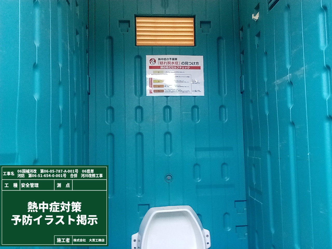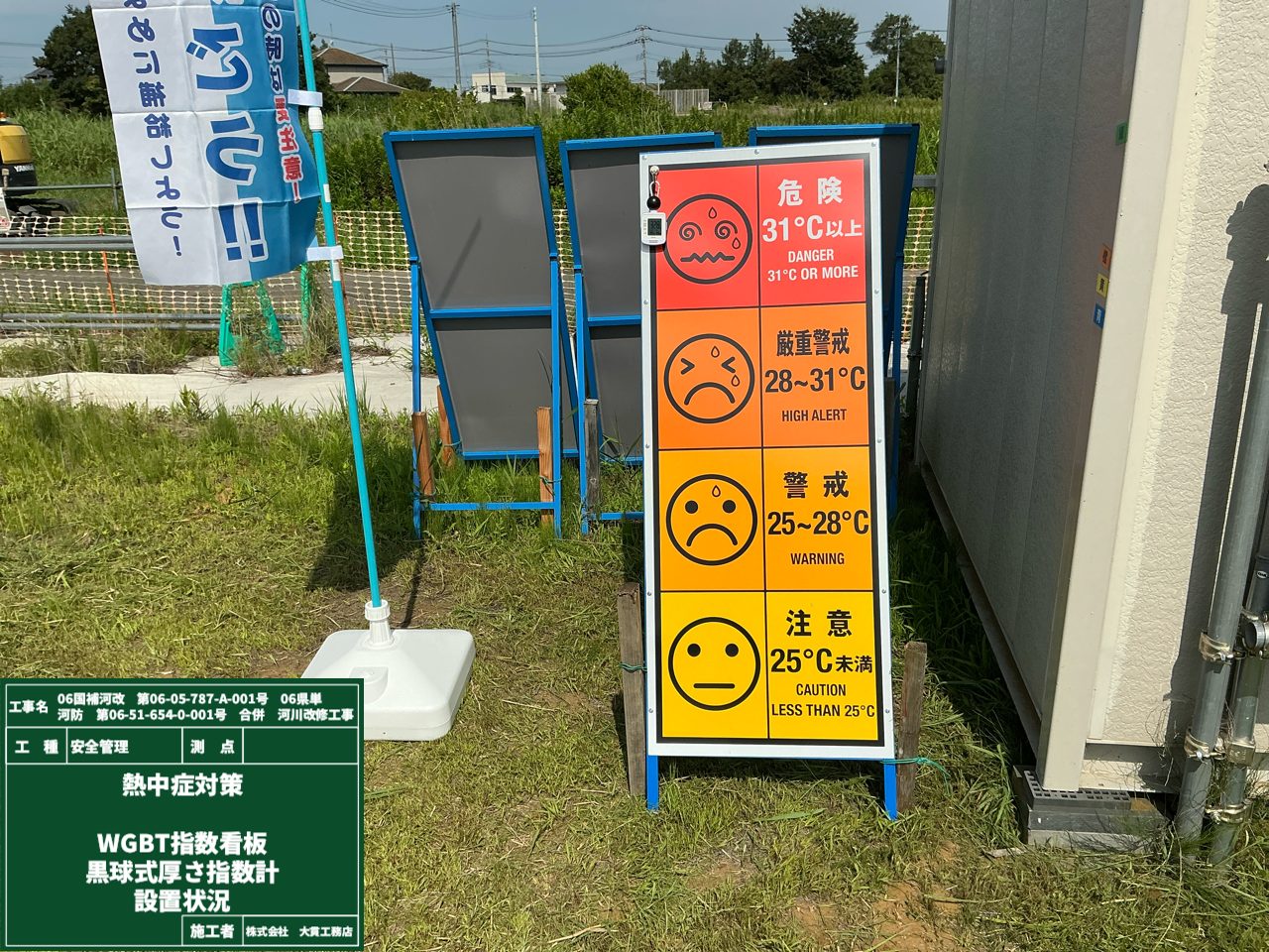 現場の熱中症対策の写真です‼ 対策への気合は十分ですが、暑い中での作業に気合いは不要です🙅