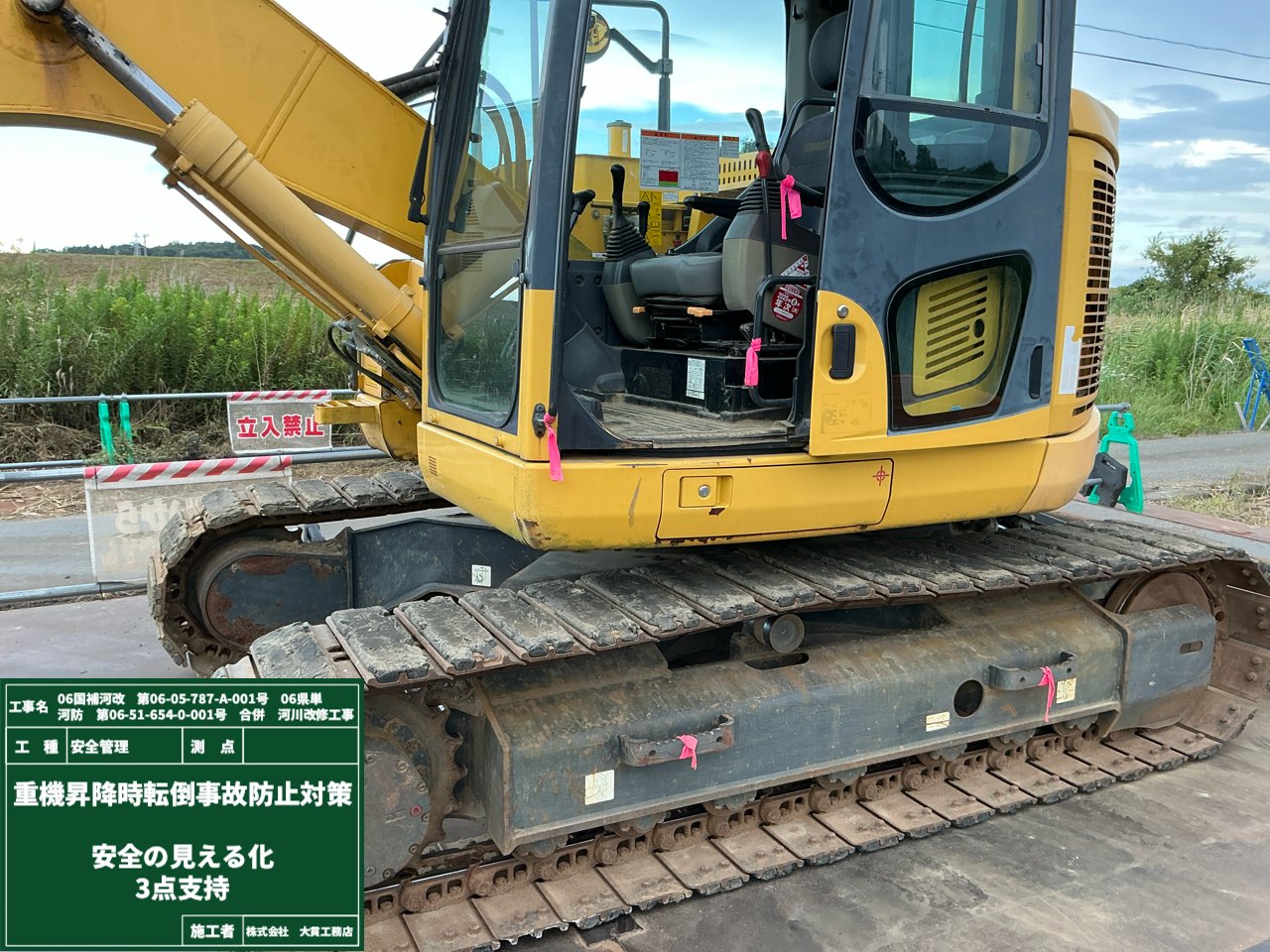 そしてこちらは、重機の乗り降り時の転倒防止対策でピンクのリボンを巻いています🎀
