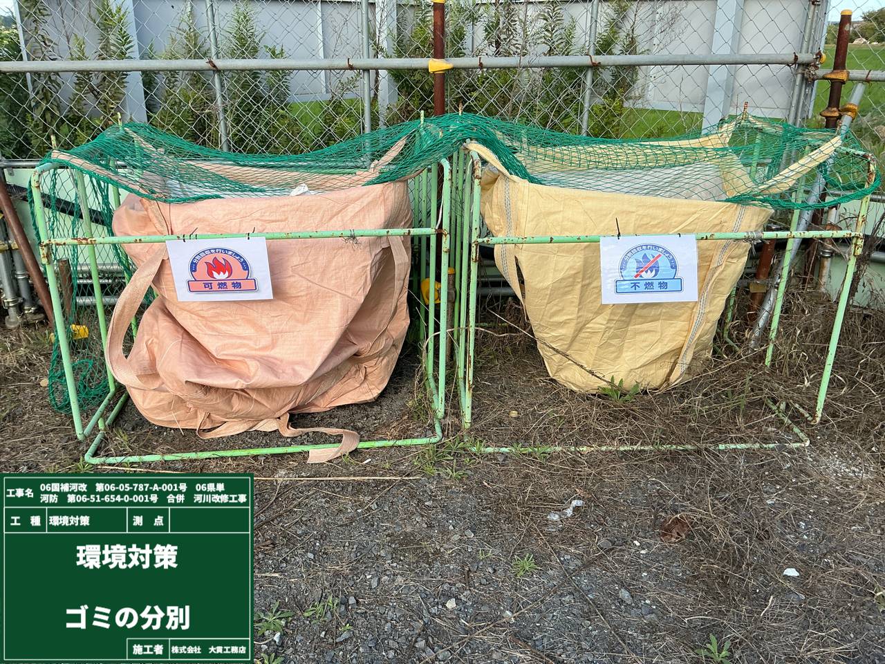 それから川沿いにたまったゴミ拾いと、大型土のうの設置です。