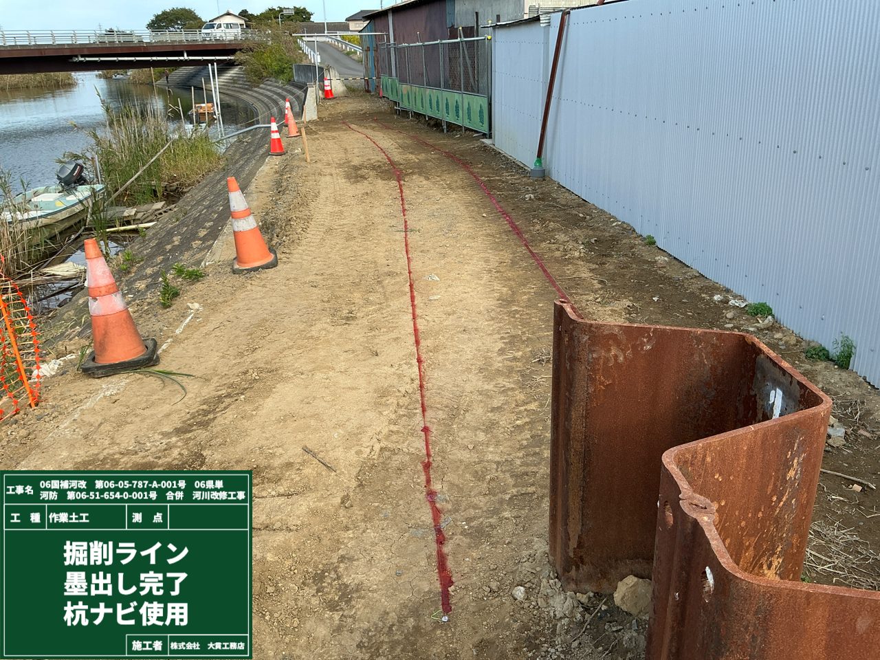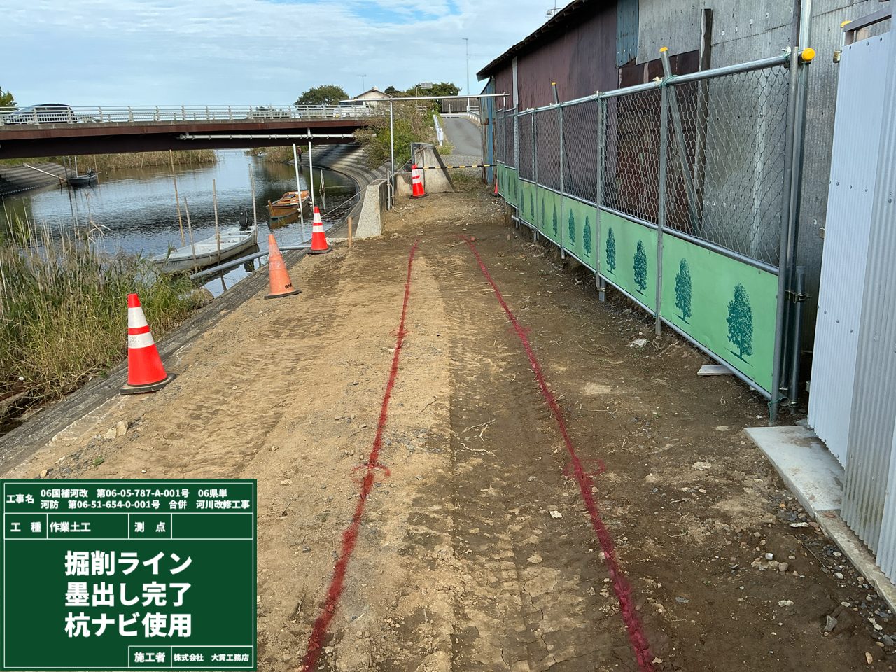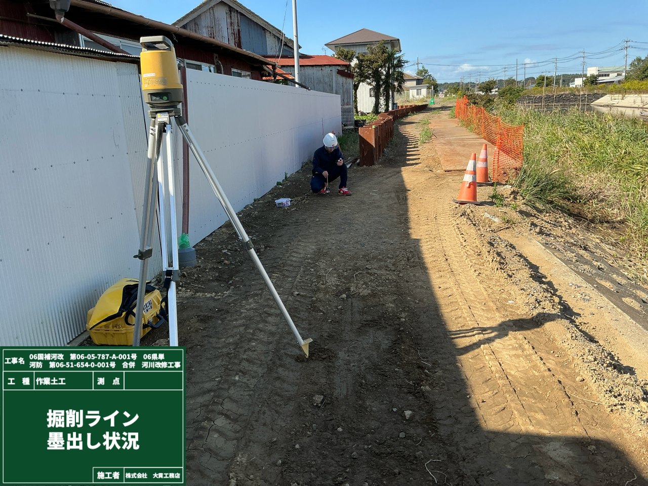 作業があっという間に終わり、掘削ラインの墨出しが完了しました。
