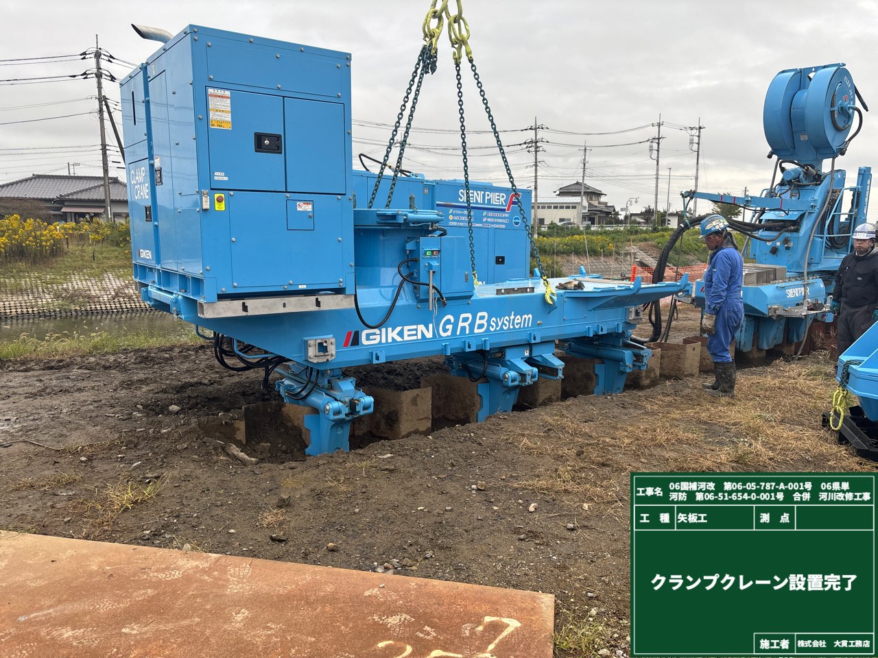 今回はこのサイレントパイラーで、鋼矢板を打ち込んでいきます。