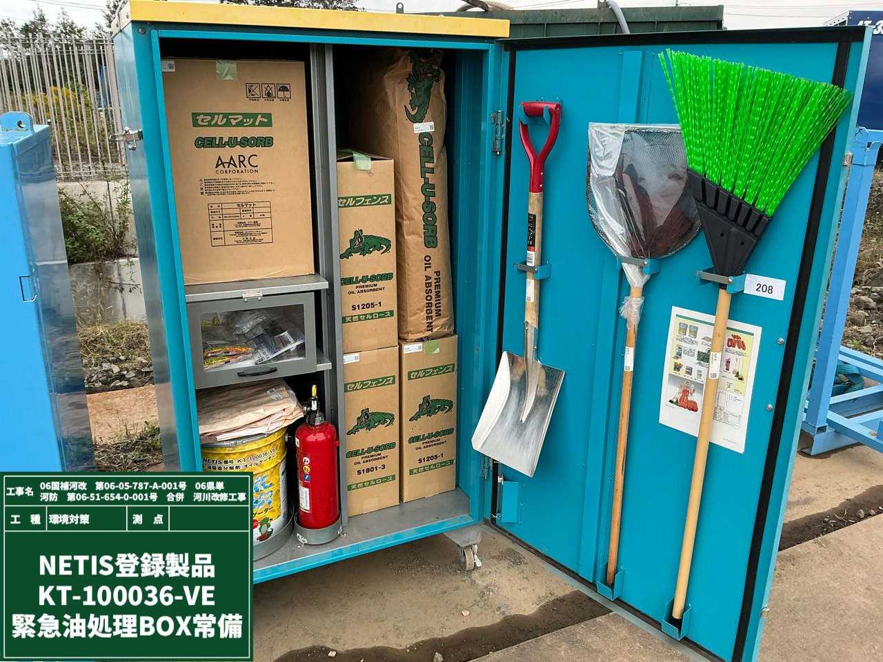万が一、現場での油漏れや河川への流出に備えて、油汚染対策の道具がビッシリと入っています!