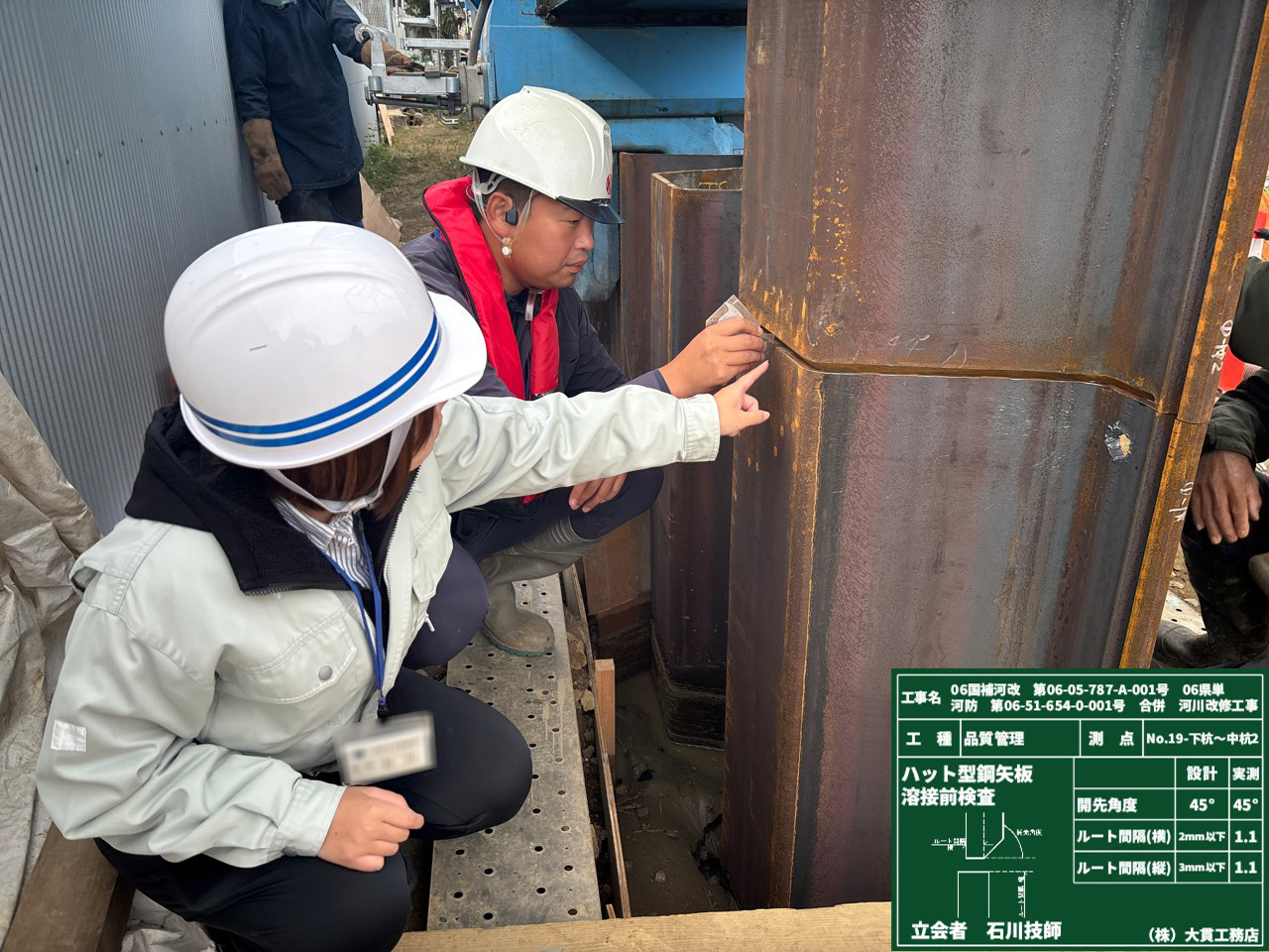 杭と杭の間には、研磨と探傷試験を行いながら、丁寧に杭打ちを進めています✨