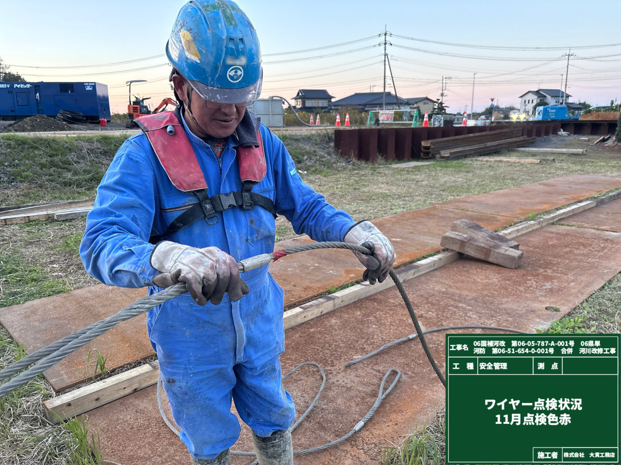 現場で使用しているワイヤーロープには、色テープを巻いています。このテープ、実は毎月お色直しをしているんですよ✨